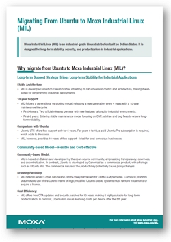Migrating from Ubuntu? Discover why Moxa Industrial Linux (MIL) offers 10 years of free support, robust cybersecurity, and a stable, cost-effective platform perfect for industrial applications. This document provides a comprehensive comparison between MIL and Ubuntu to justify migration. MIL is optimized for Moxa's industrial-grade computers, including specialized software modules and cybersecurity support to meet the demanding requirements of mission-critical OT environments.