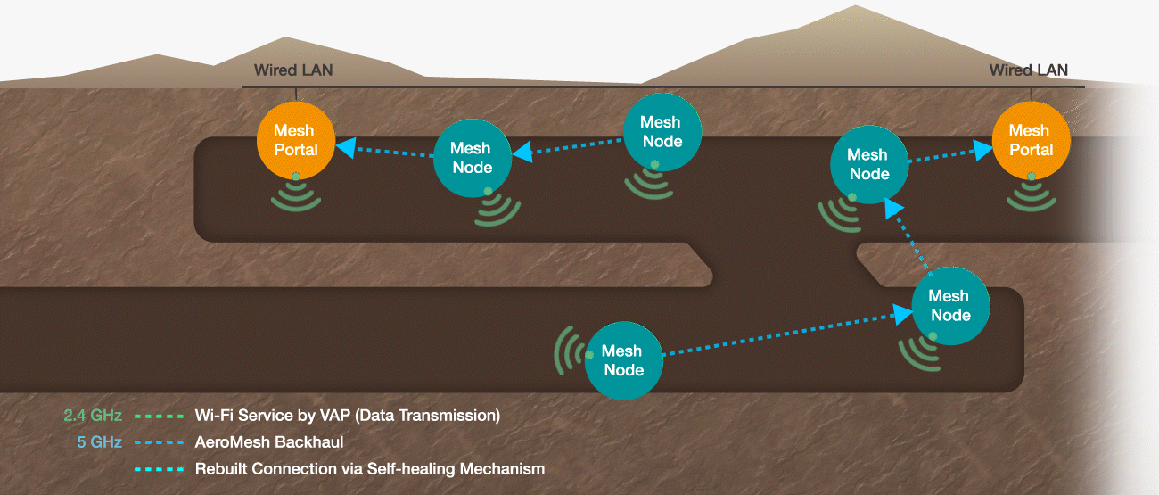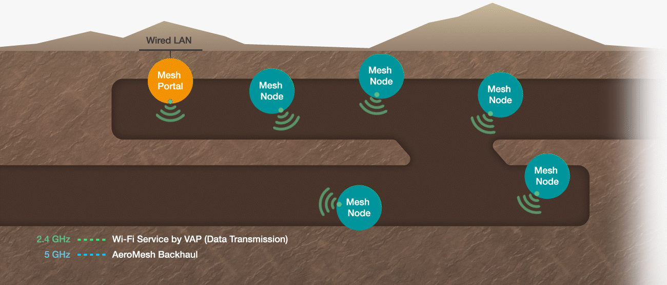 Driverless, remote-controlled mining trucks need a stable industrial Wi-Fi connection to precisely navigate the rough mining terrain towards their intended destination. AWK industrial access points with Moxa's AeroMesh technology can seamlessly extend radio coverage and facilitate fast recovery in case of an AP failure.