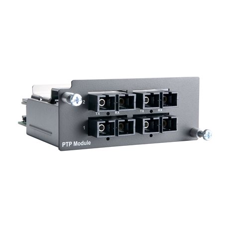 Fast Ethernet module for PT-7728-PTP series with 4 100BaseFX multi-mode ports with SC connectors, hardware-based IEEE 1588 PTP V2 protocol support