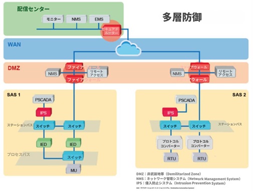 図2:デジタル変電所の運用セキュリティフレームワークとしての多層防御戦略