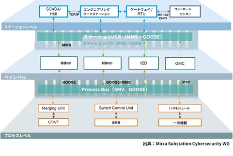 図1:IEC 61850デジタル変電所アーキテクチャにおけるプロトコルベースの可視化