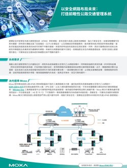 隨著技術進步,高速公路交通管理正持續演進,以實現交通流量最佳化、路況即時監控,以及快速的事故應變,全面提升行車安全性與運作效率。為達成此目標,建構一套具備資安防護與智慧功能的 ATMS 骨幹網路至關重要,它能確保整套系統能夠維持可靠且不間斷的運作。即時資料傳輸是 CCTV 監控、車輛偵測和緊急應變的核心要素,而資安防護則可防止這些系統遭受未經授權的存取,確保系統持續且穩定地運作。請閱讀應用說明,了解如何善用 Moxa 解決方案,打造安全可靠且可擴充的網路,以及可滿足未來需求的高速公路 ATMS 基礎設施。