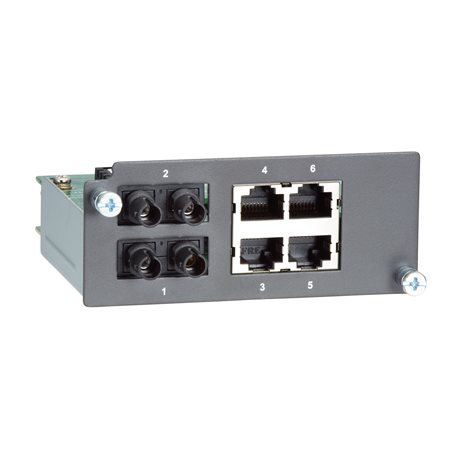 Fast Ethernet module with 2 100BaseFX multi-mode ports with ST connectors and 4 10/100BaseT(X) ports