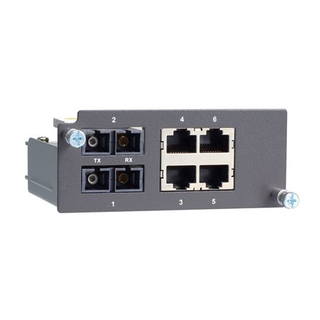 Fast Ethernet module with 2 100BaseFX single-mode ports with SC connectors and 4 10/100BaseT(X) ports