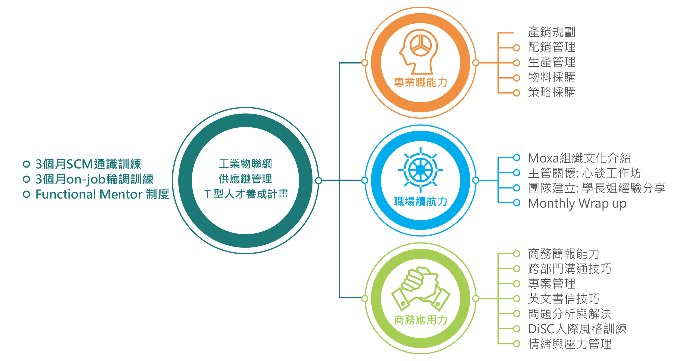 Moxa 供應鏈管理人才養成計畫,以培養成為T型人才為目標,提供專業技能及多元的訓練場域,邀請對供應鏈管理有熱忱的Z世代夥伴一同加入。